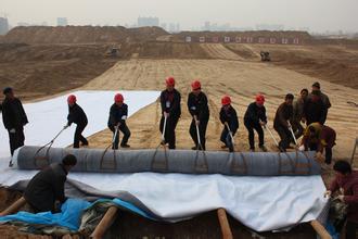 3)應(yīng)盡量避免穿釘鞋、高跟鞋在ST-GCL防水毯上踩踏;車輛等機(jī)械不得直接碾壓膨潤(rùn)土防水毯。
