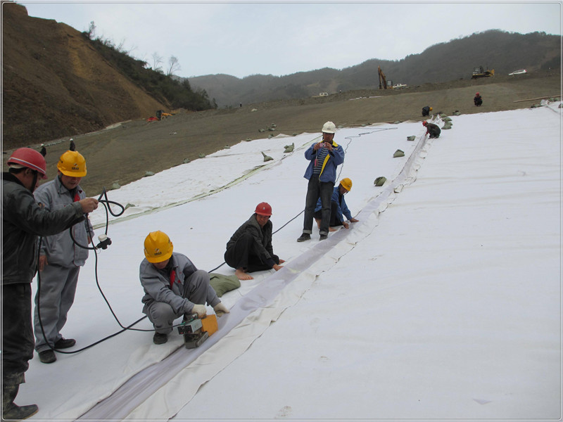 HDPE防滲膜又稱為高密度聚乙烯膜、HDPE土工膜,具有以下優(yōu)點:防滲系數(shù)較高、穩(wěn)定性較好、耐老化性能強、可抗植物根系穿刺、有較高的機械強度、成本低效益高。由于具有以上優(yōu)點,因此在工程防滲、養(yǎng)殖防滲、地下室防滲、人工湖防滲、垃圾填埋防滲、固廢填埋防滲等領(lǐng)域運用較多。但其施工質(zhì)量要求較高,由于防滲性能是衡量垃圾衛(wèi)生填埋場是否達(dá)到環(huán)保要求的主要指標(biāo),如果施工時候沒有按照有關(guān)標(biāo)準(zhǔn)要求進(jìn)行嚴(yán)格管理,極易造成接頭漏水和局部破裂滲漏現(xiàn)象發(fā)生,給環(huán)境保護(hù)造成嚴(yán)重影響。